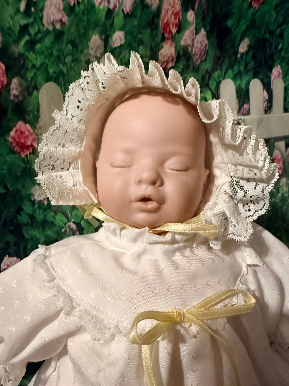 Our Baby Dolls are all pre-owned and refurbished by our doll hospital. Dolls have been cleaned and packaged for their new home and are ready for you to adopt. Some baby dolls are meant for adult collectors and some are for children. Please read descriptions for appropriate age ranges.